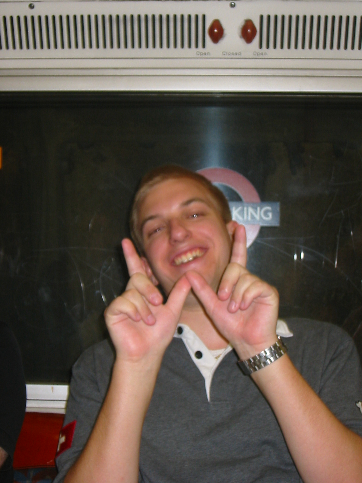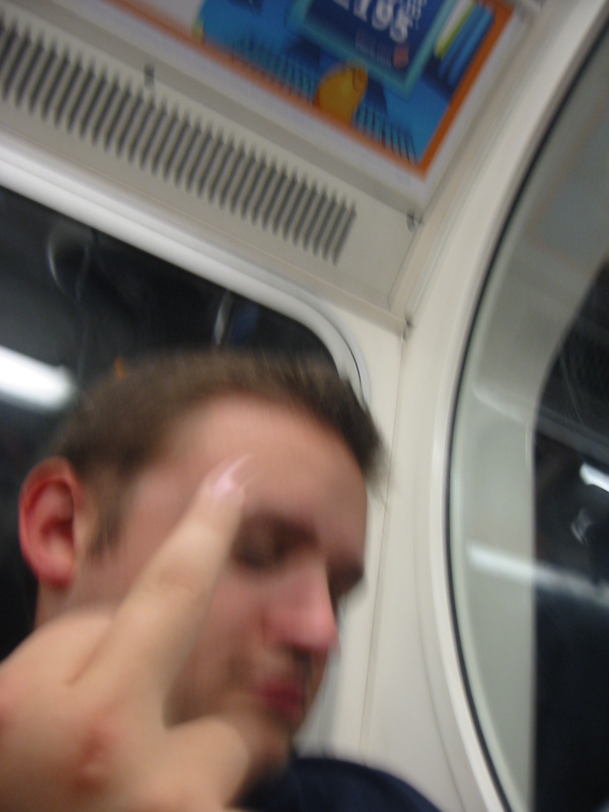 Between Bond St and Liverpool St Gus turns obnoxious. Laurie sitting on Gus