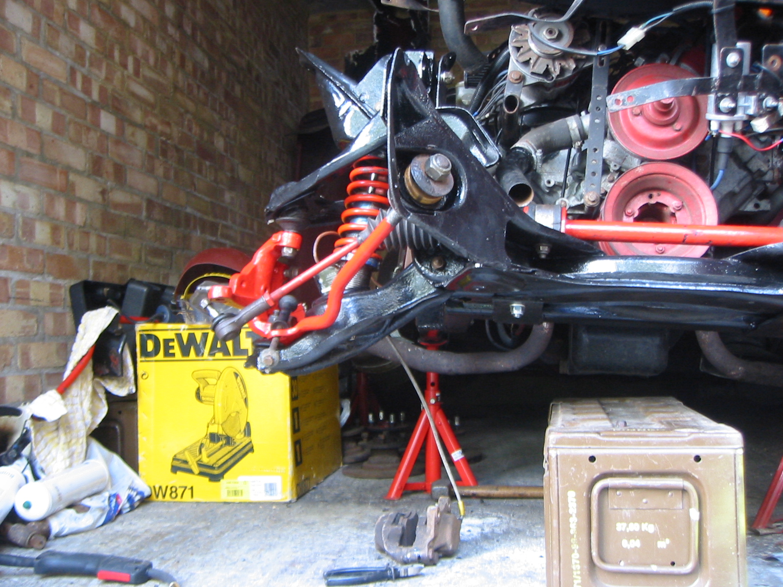 First job of the morning was to top coat the chasis with two coats of chasis black paint. With some spare paint the square washers and the underside of the sub-frame were also given coats.