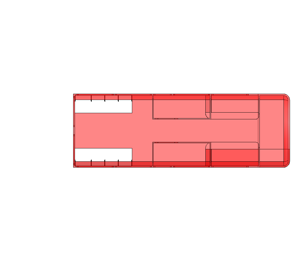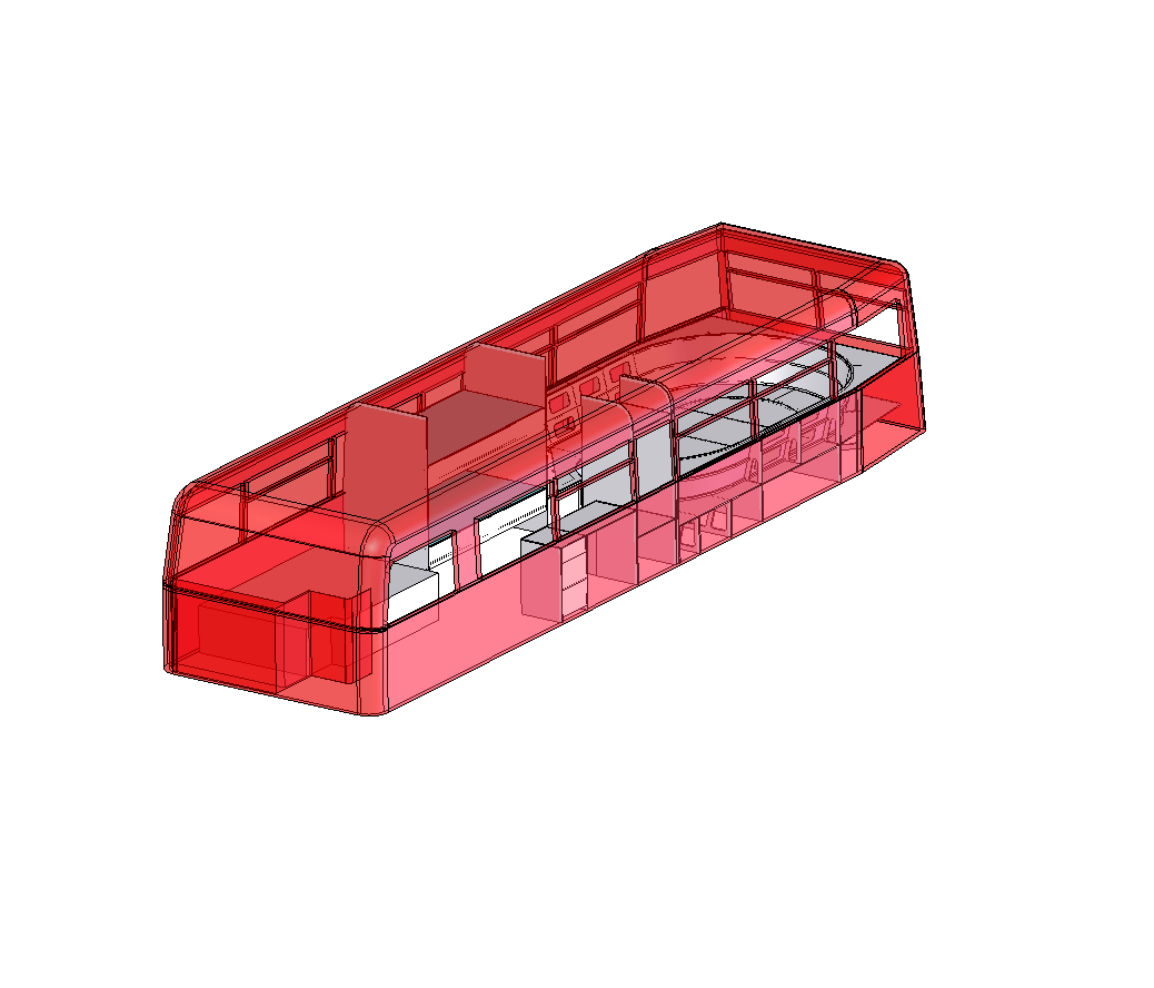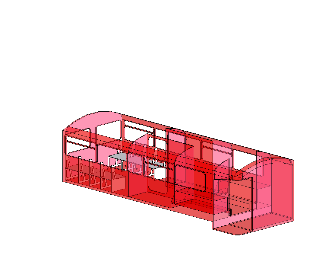 Most of the concepts are discussed in terms of window bays. This is because it is neatest if any vertical structures line up with the existing pillars, at the detailed design stage this will be even more important since the window pillar provide one of the few attachment points to secure the interior fittings to the shell. The RML variant of the Routemaster is comprised, from front to back, of three full width window bays, followed by a half width window bay, then another three full width window bays.
